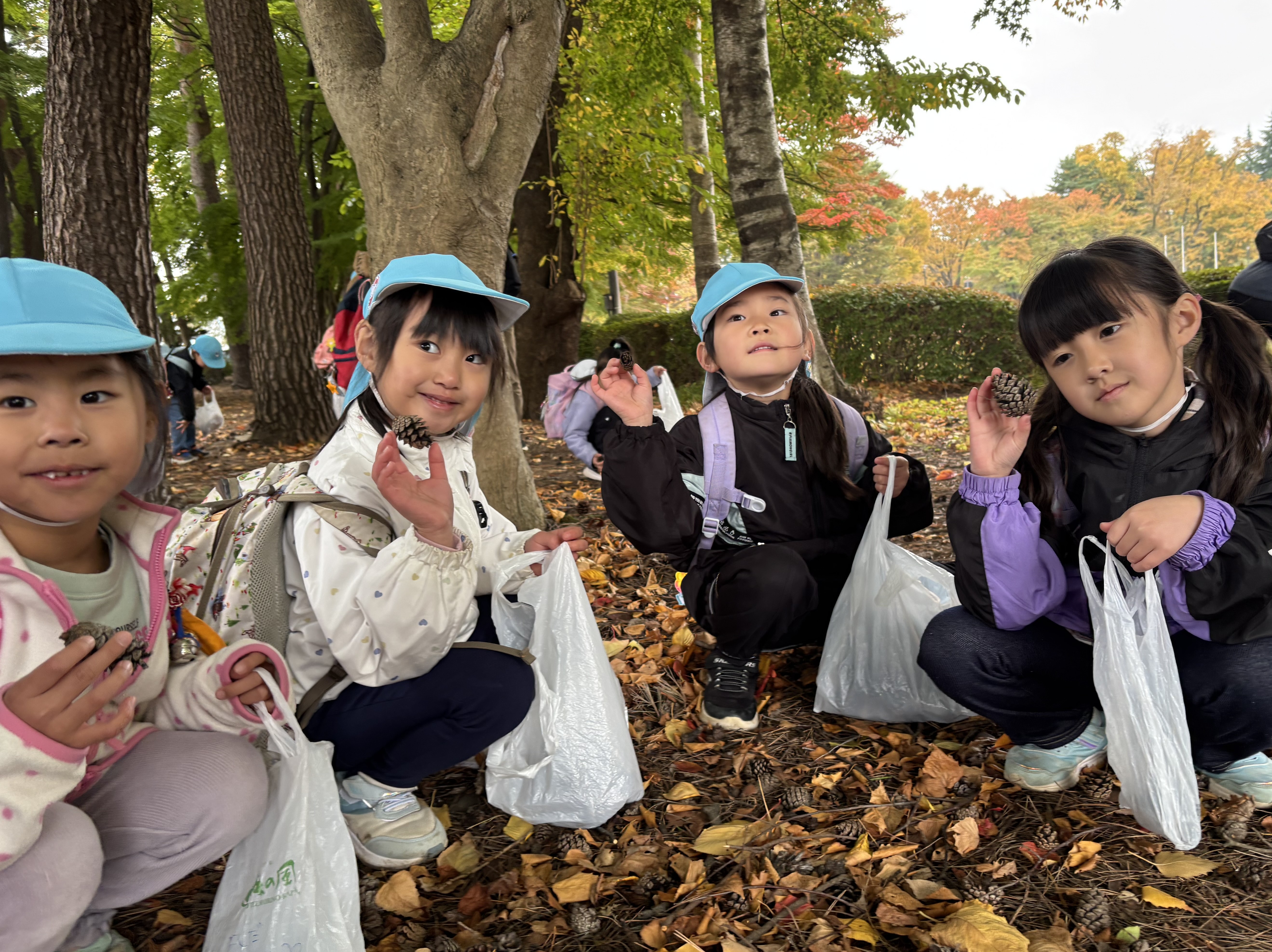 秋を探しに運動公園へ! 色づいた葉っぱや松ぼっくりを見つけてきました。りすにも遭遇し、大喜びの子どもた...