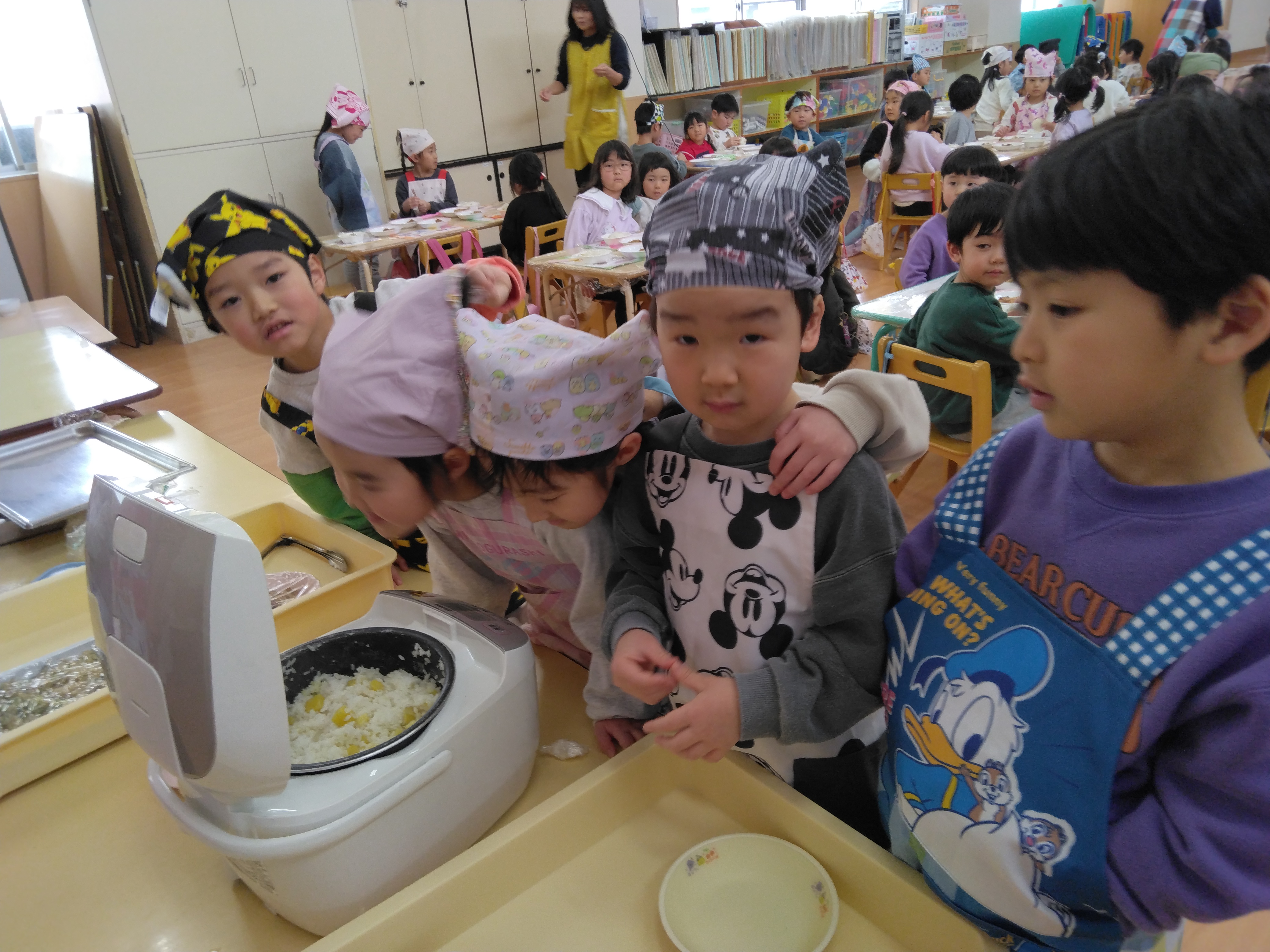 5歳児が育てて、収穫したさつまいもでメニューを決め、3・4歳児にふるまってくれました。 その名も、『ゆ...